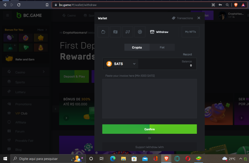Website URL ( https://bc.game/#/wallet/withdraw)