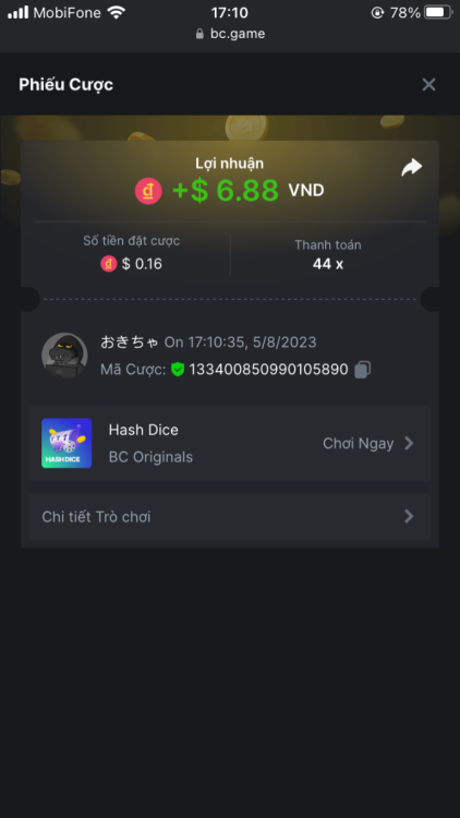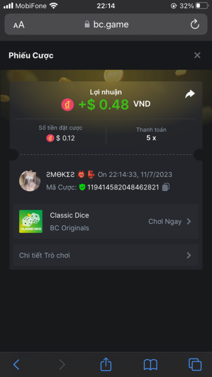 4. I've joined the forum event; Now it's your turn to win generous rewards from BC.GAME! Bet id : 2294427155662254197
